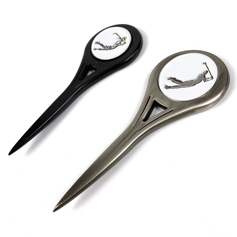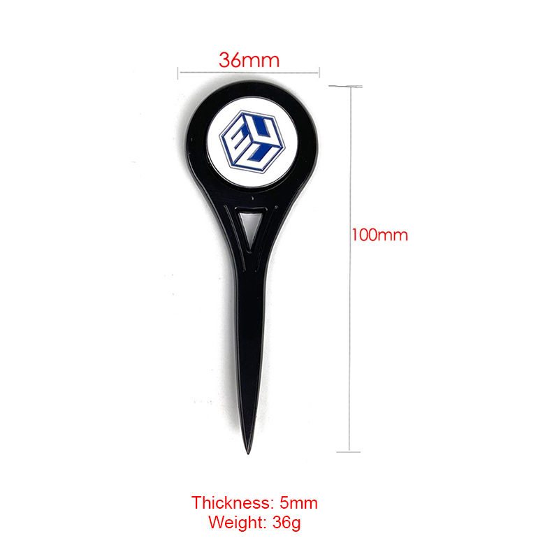This 36g (100mm) divot tool (black/silver finishes) features detailed golf player designs—sleek, durable, and functional for green repairs. Perfect for golfers who want gear that combines sporty style with on-course practicality, adding a personalized touch to their round.