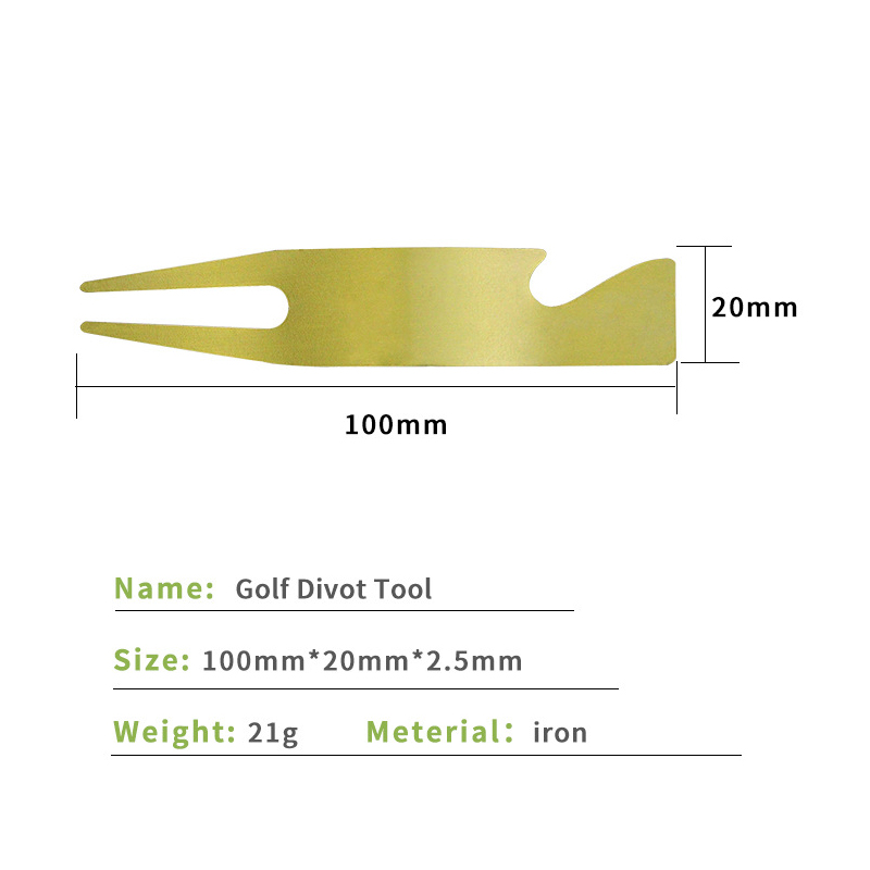 This 21g (100mm) iron divot tool (gold finish) doubles as a bottle opener—sleek, durable, and multi-functional. Perfect for green repairs and post-round refreshments, it’s ideal for golfers who want gear that blends utility with stylish simplicity.