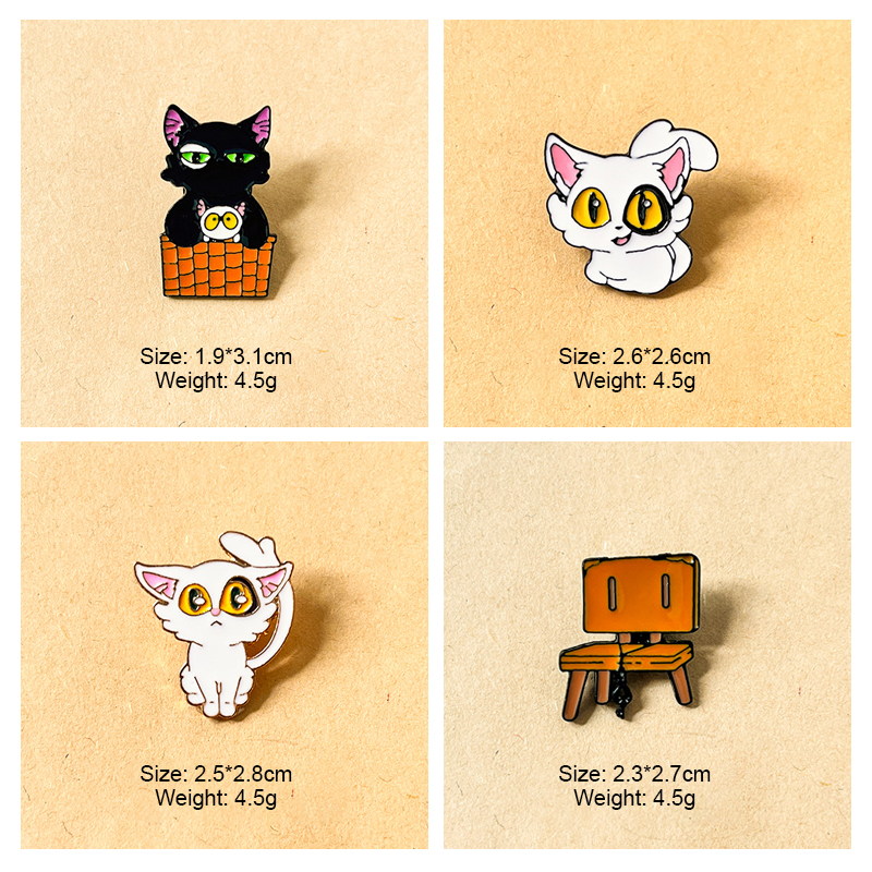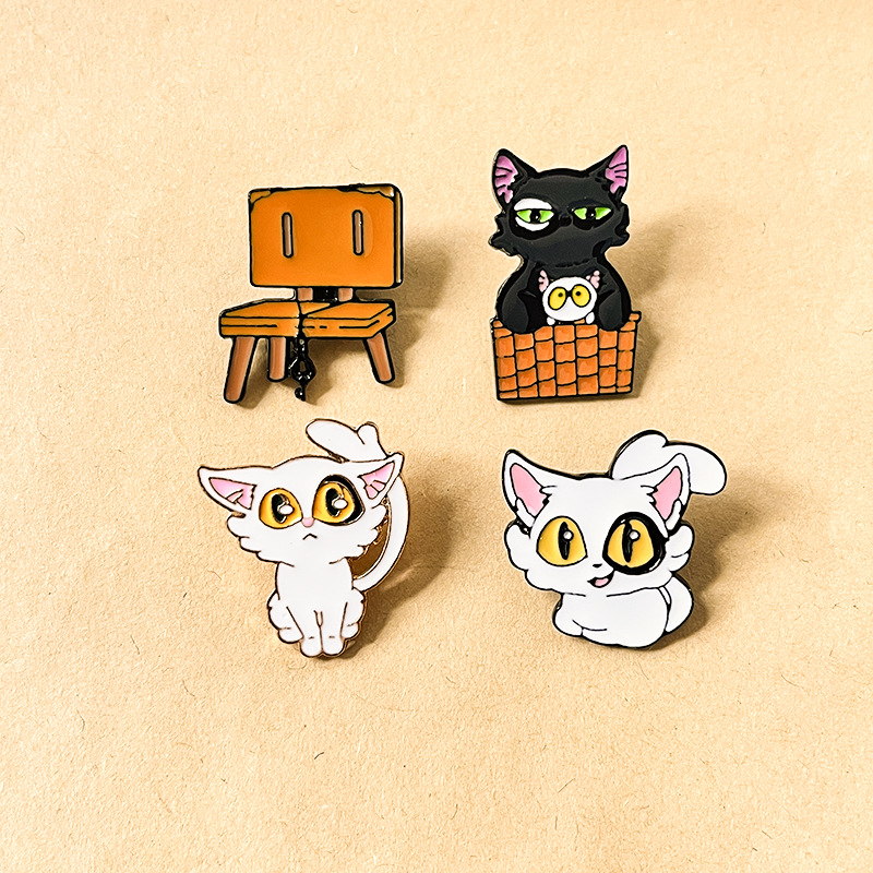 This pin set has 3 cute anime cats (including a parent-kitten pair) plus a quirky chair—playful, charming design. For anime lovers, it adds whimsy to bags/jackets, ideal for daily styling or infusing outfits with fun, vivid character-themed personality.
