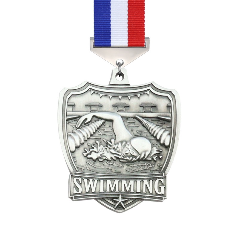 This striking shield-style swimming medal (crafted in antique gold, silver, and copper) suits a range of aquatic competitions—be it school swim galas, local tourneys, or recreational races. As a prized top-tier award, it celebrates swimmers’ hard-fought performances, infusing award ceremonies with a polished, esteemed touch.