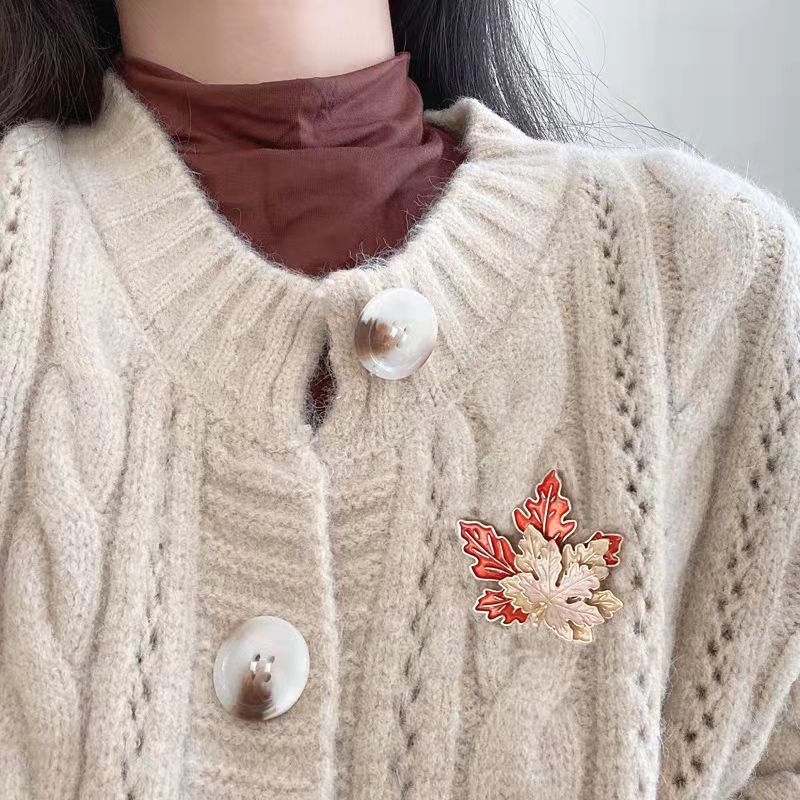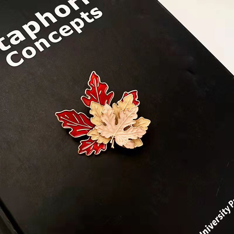 This layered maple leaf pin features warm red and beige tones, embodying cozy autumn charm. Ideal for nature lovers to add seasonal flair to coats, bags, or outfits—perfect for elevating fall looks or decorating with a touch of autumnal nature.