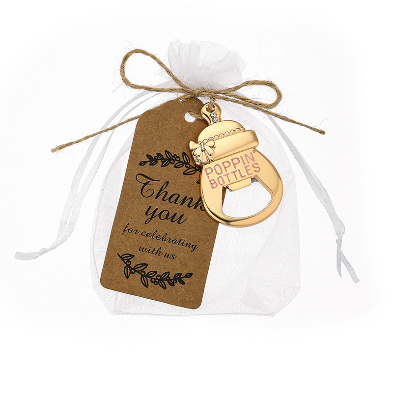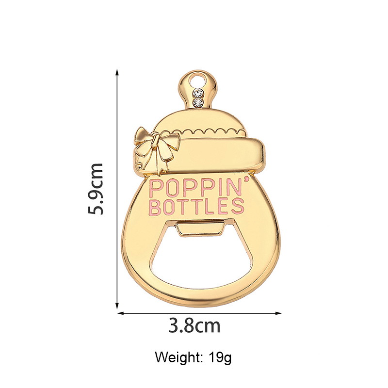 This 19g (5.9cm) gold opener mimics a baby bonnet (with a bow & gem detail), etched with "Poppin' Bottles." It pops caps easily, blending cute baby-themed charm with playful humor—ideal for baby showers, gender reveals, or a sweet gift for new parents.