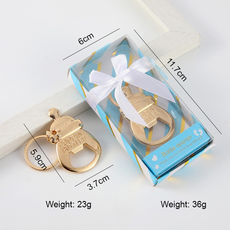This 23g (5.9cm) rose gold opener mimics a baby bottle, etched with "Poppin’ Bottles"—and doubles as a keychain. It pops caps easily, making it a playful favor for baby showers, bachelorette parties, or casual gatherings, packaged with a "For You" tag.