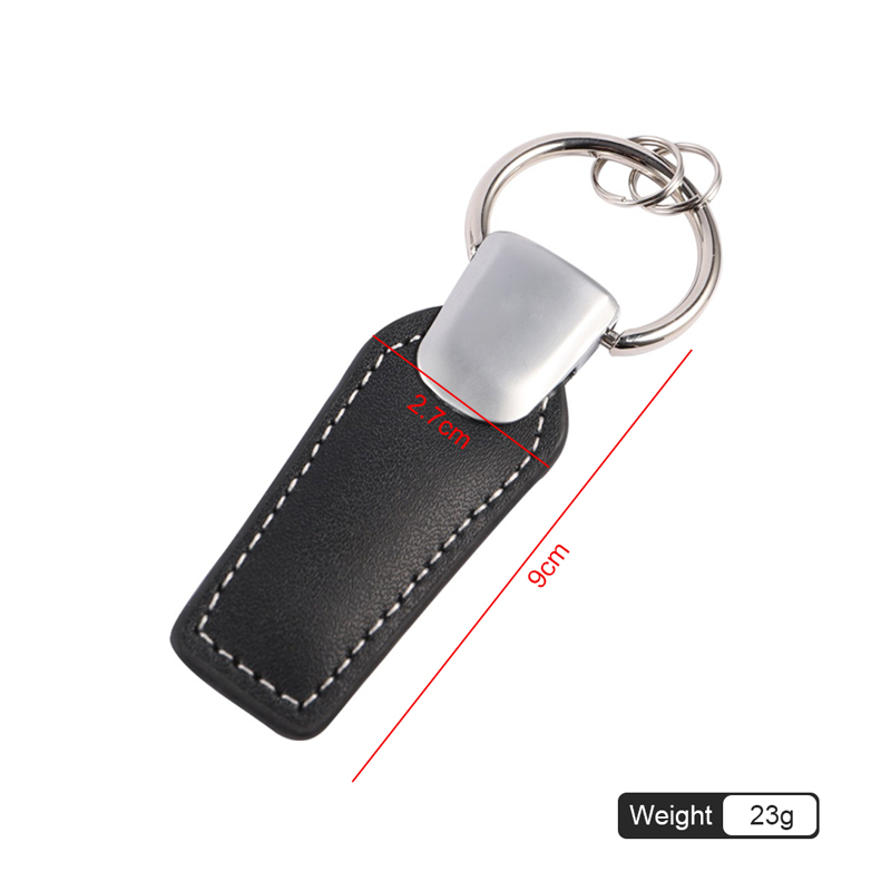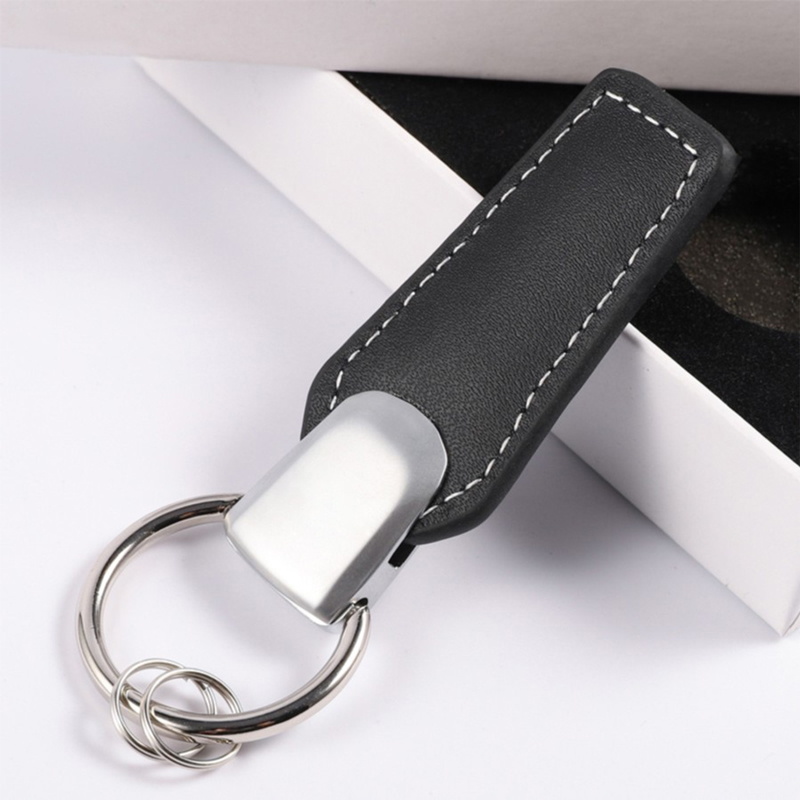 This keychain features a black leather strap with white stitching and a polished metal accent. With a sleek, minimalist style, it’s perfect for professionals as a daily key accessory, ideal for organizing keys or gifting to those who value understated, durable elegance in everyday use.