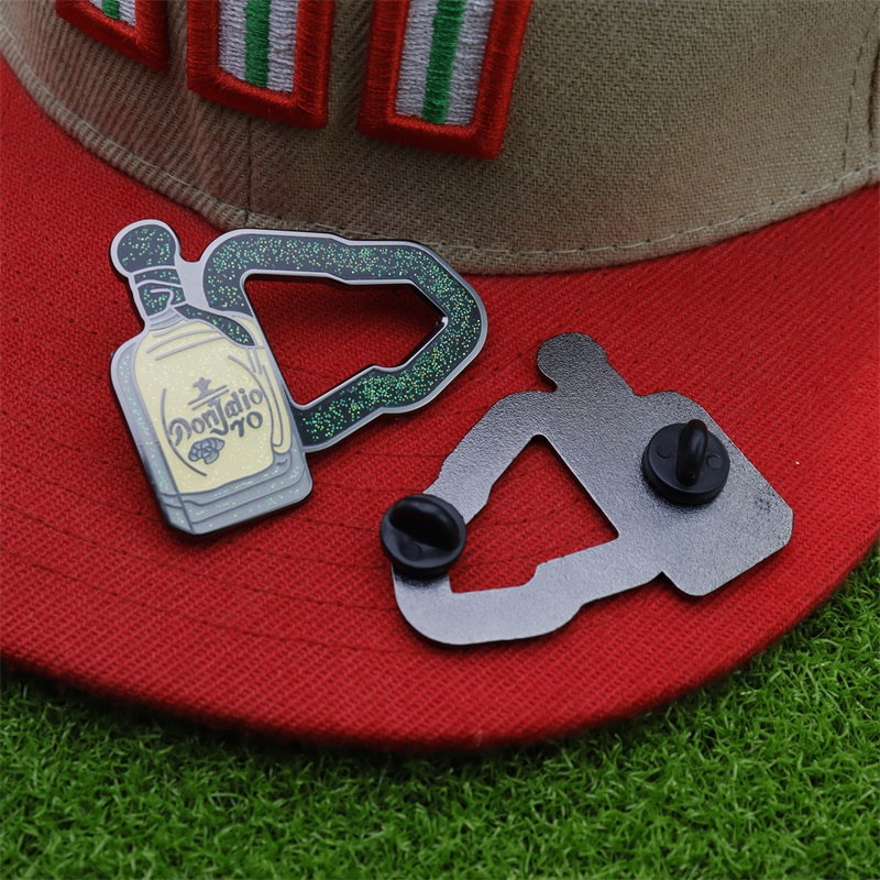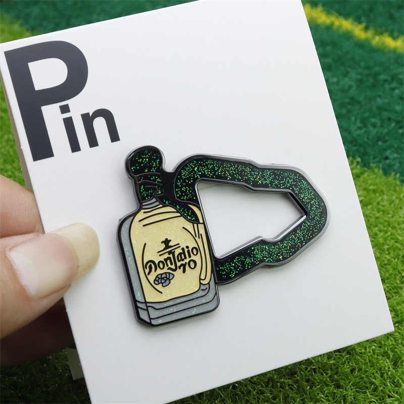 These pins feature the delicate silhouette of 70 bottles, accented with green glitter trims and clear brand details (e.g., the logo on the bottle body). Used to adorn caps or bags, they add chic, trendy charm—perfect for those favoring personalized accessories to elevate outfit details.