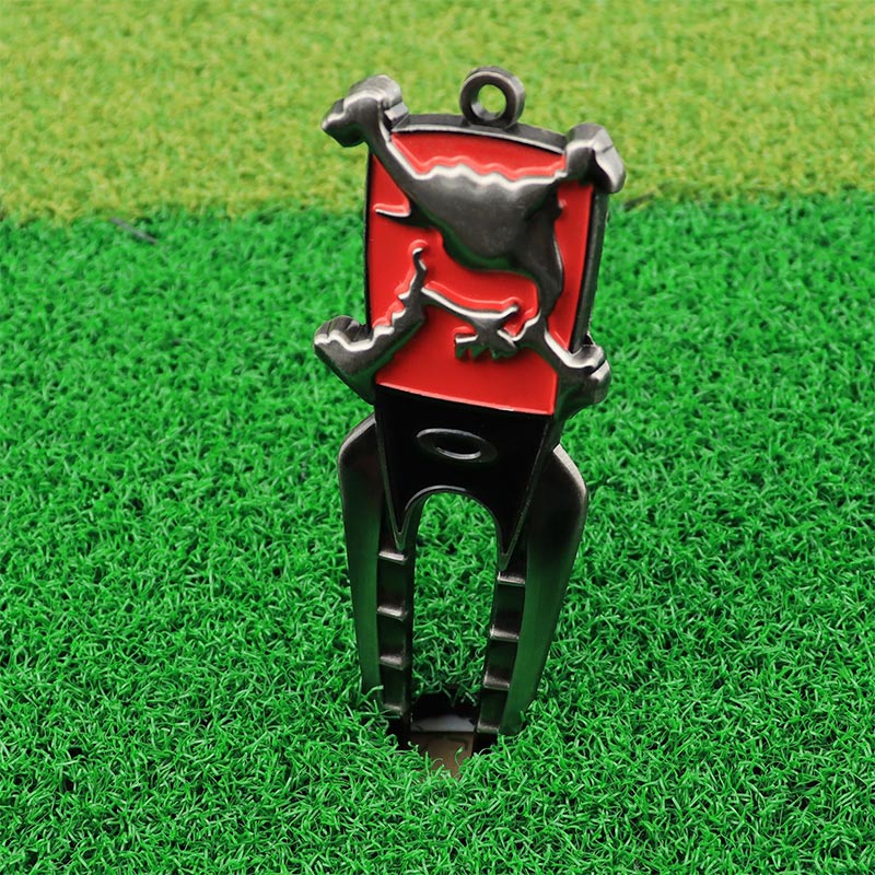 These bold bull-embellished divot tools (white/red/blue) blend rugged style with durability. Functional for green repairs, they add a distinctive, eye-catching touch—ideal for golfers seeking unique, statement-making on-course gear.