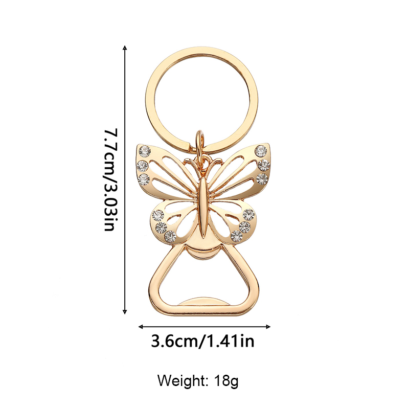 This 18g (7.7cm) rose gold opener features a diamond-adorned butterfly design (plus a keychain). It opens bottle caps easily, doubling as a stylish accessory—ideal for party favors, wedding gifts, or daily use to add a touch of delicate charm.