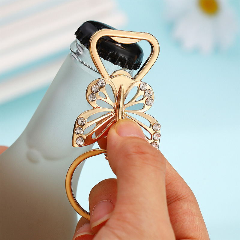 Product : Butterfly-Shaped Crystal Rose Gold Bottle Opener