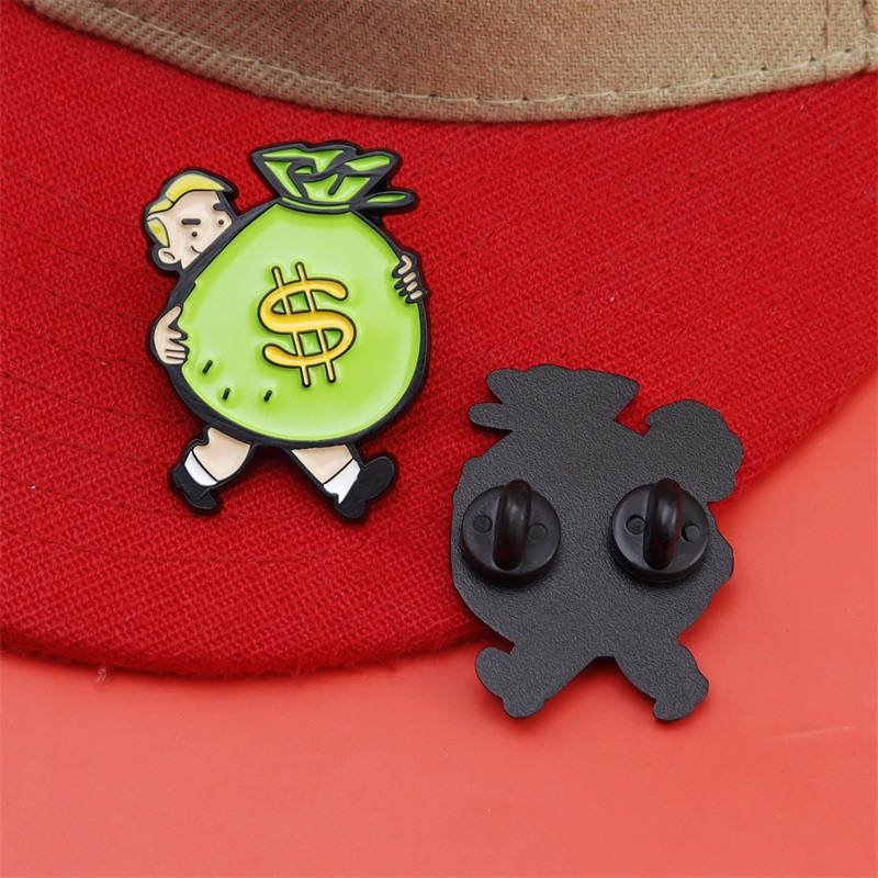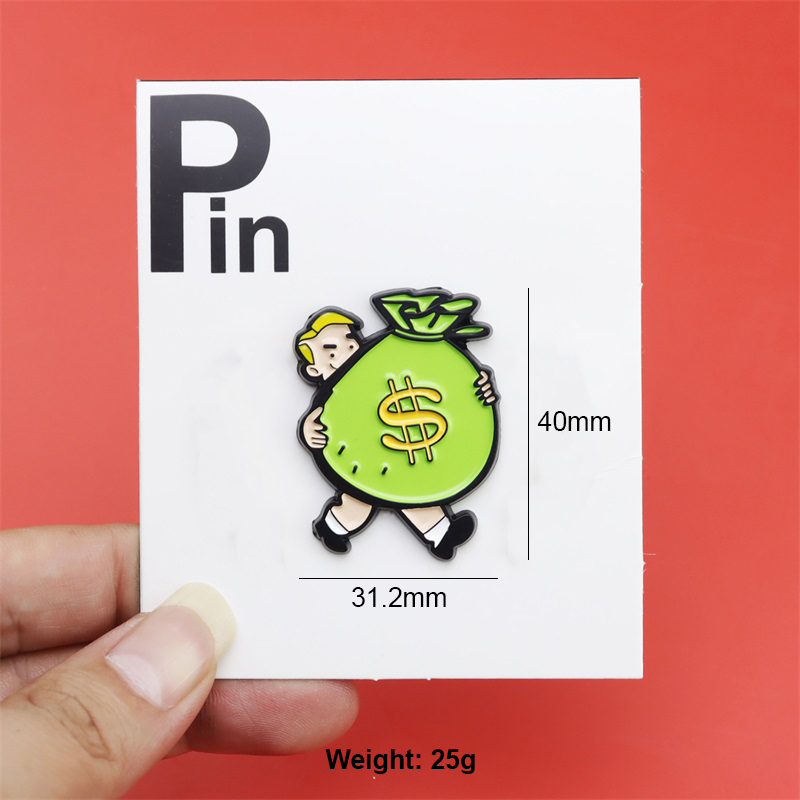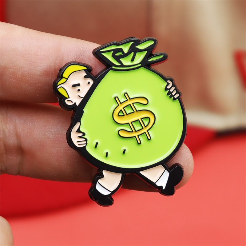 Cartoon Money Bag-Carrying Character Enamel Pins