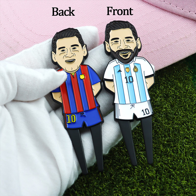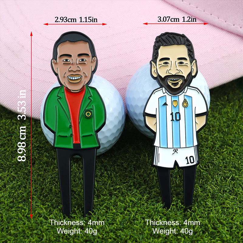 This 40g (8.98cm) figurine-shaped tool (vibrant color schemes) fixes green divots. It features detailed celebrity designs (e.g., sports stars), durable 4mm build, merging fan-themed flair with reliable on-course functionality—ideal for golfers who love personalized, playful gear.