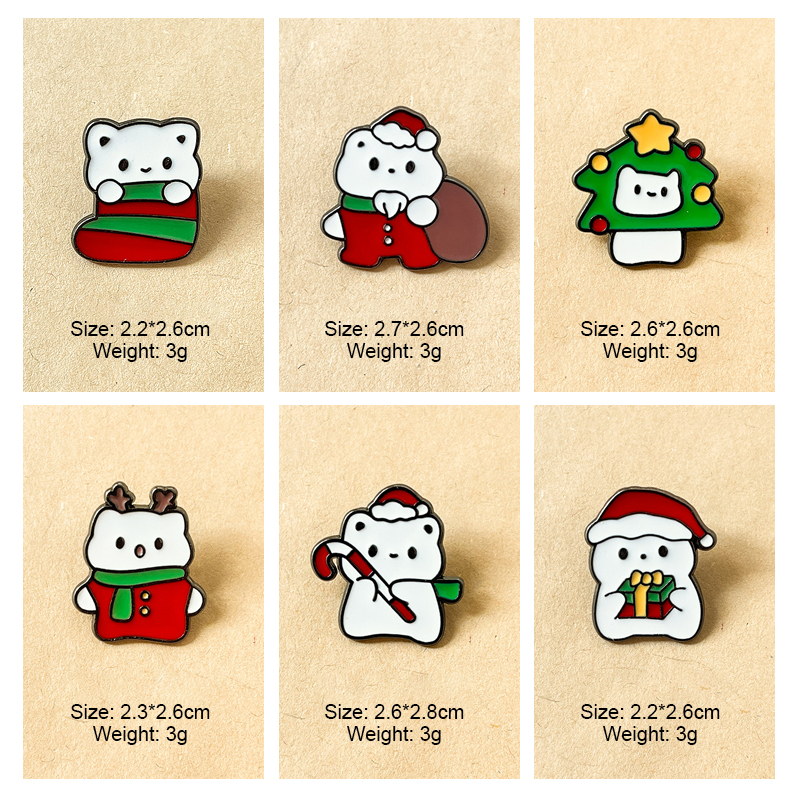 This Christmas critter pin set has 6 festive designs (Santa-hatted cuties, tree cat, candy cane)—cheerful, whimsical charm. For holiday lovers, it adds seasonal flair to bags/jackets, ideal for Christmas styling or infusing outfits with warm, playful festive personality.