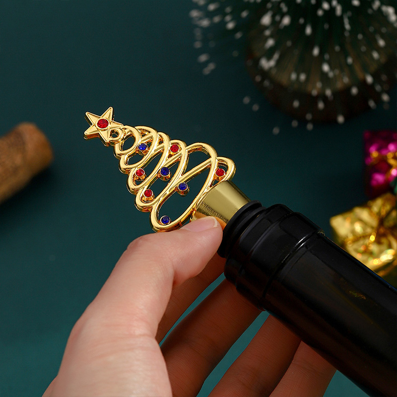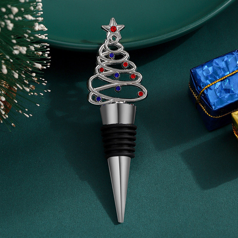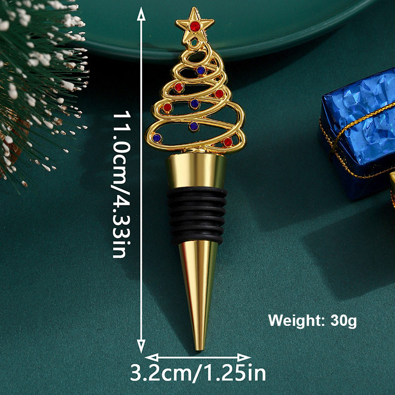 This 30g stopper is shaped like a twisted Christmas tree (in gold/silver finishes, adorned with red-blue gems and a star top). Its silicone grip seals wine bottles tightly, doubling as festive decor—ideal for holiday parties, gifting, or adding sparkling seasonal charm to wine collections.