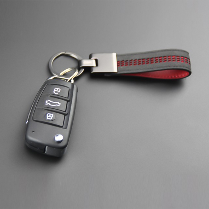 These leather metal keychains feature black leather with vibrant color stitching (red, blue, yellow), sturdy metal key rings, and exquisite craftsmanship. Stylish, durable, and ideal as gifts for car lovers, perfect for gifting on birthdays, holidays, or as a premium accessory for key organization.
