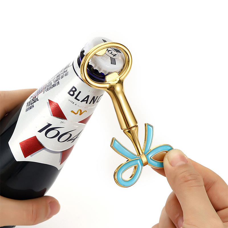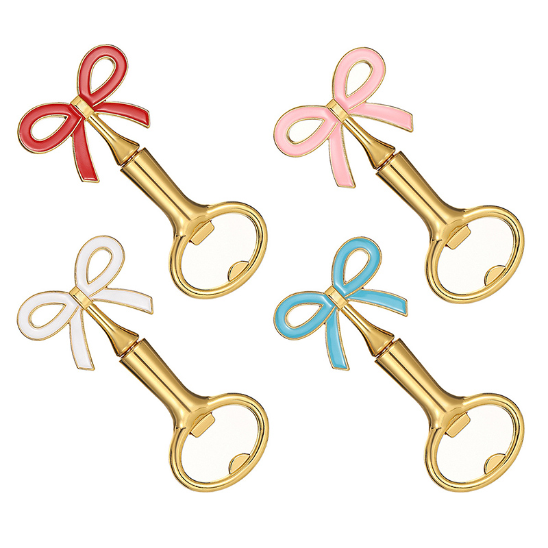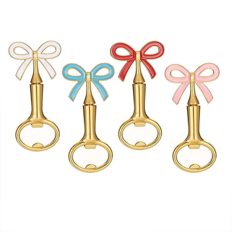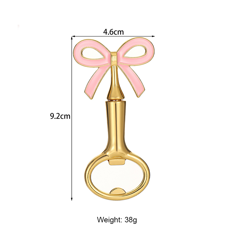 This 38g (9.2cm) opener features a vibrant bow (white/red/blue/pink) on a glossy gold base. It pops caps easily, blending feminine charm with elegance—ideal for bridal showers, birthday parties, or as a dainty gift for style lovers.