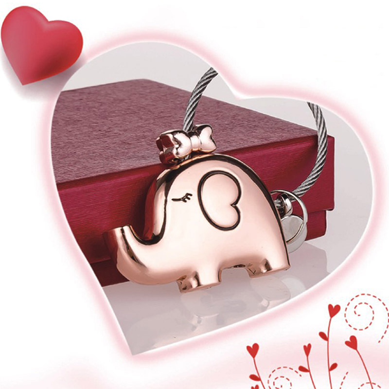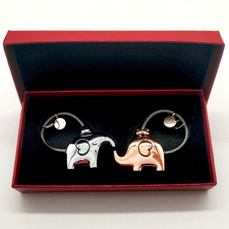 This keychain set features two elephant-shaped charms (one gunmetal, one rose gold) with magnetic connection, cable loops, and cute details like a bow and closed eyes. With a romantic, playful design, it’s perfect for couples as matching key accessories, ideal for daily use or gifting, symbolizing love and togetherness in a fun, durable form.