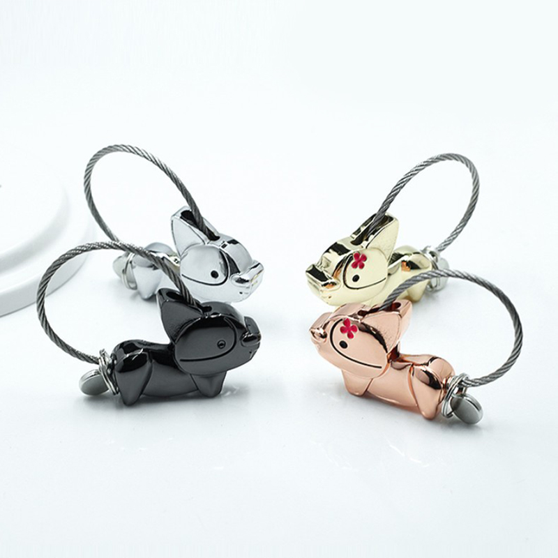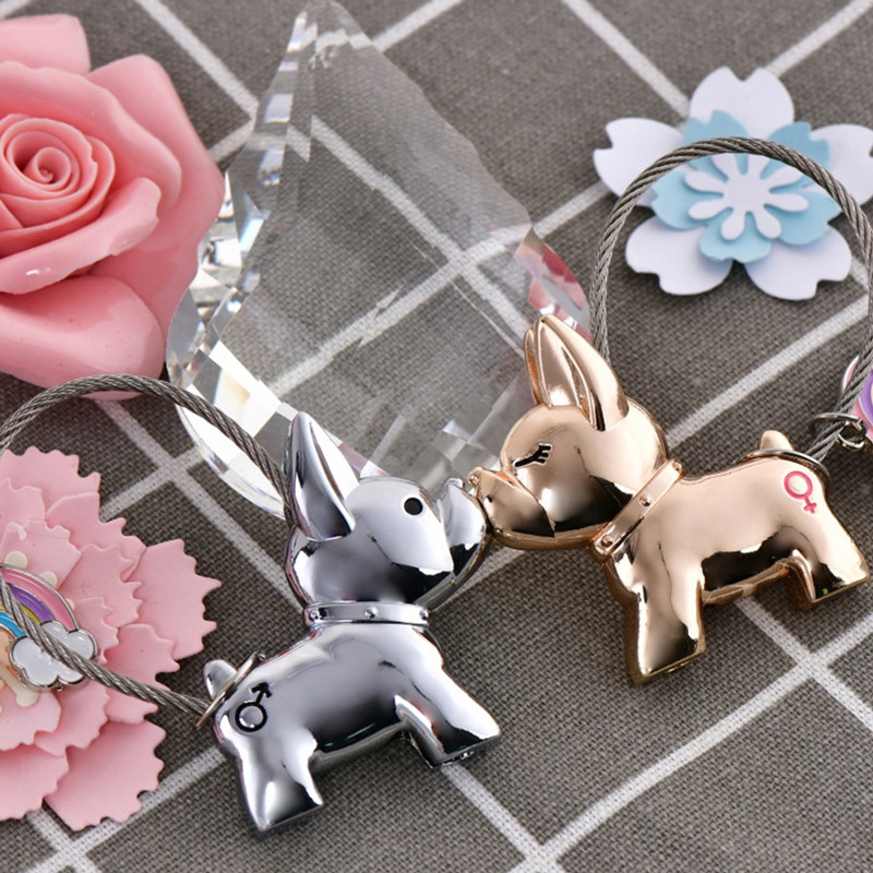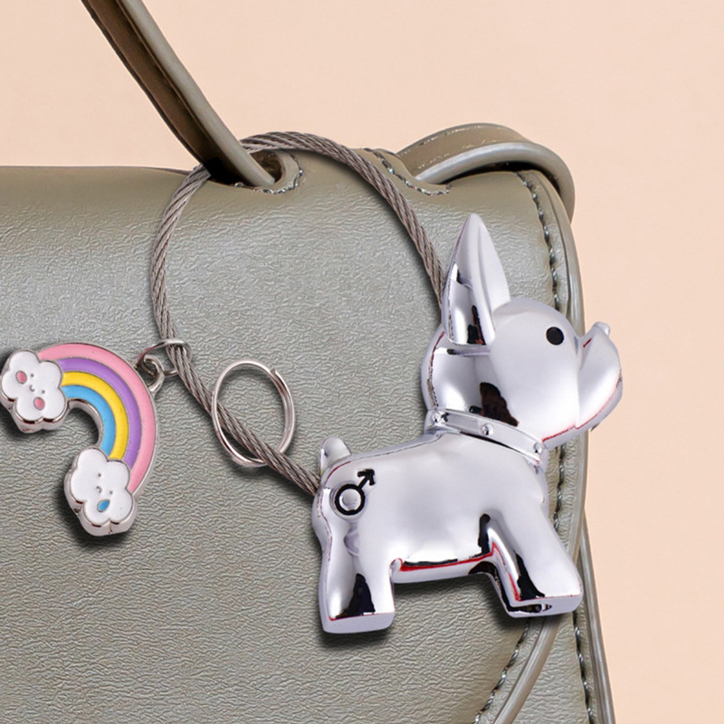 This keychain set showcases two adorable, glossy French Bulldog charms—one rose-gold with a colorful rainbow accent, one sleek black—with magnetic connection and sturdy cable loops. Boasting a playful, fashion-forward design, it’s ideal for couples as chic, matching key accessories, perfect for daily use or gifting, infusing keys with fun style while symbolizing sweet companionship.