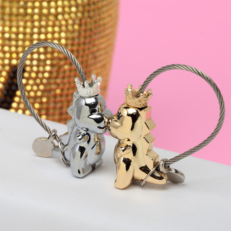 This keychain set features two French Bulldog charms—one rose gold with a rainbow charm, one black—with magnetic connection and cable loops. With a playful, trendy design, it’s perfect for couples as matching key accessories, ideal for daily use or gifting, adding a fun, stylish touch to keys while symbolizing companionship.