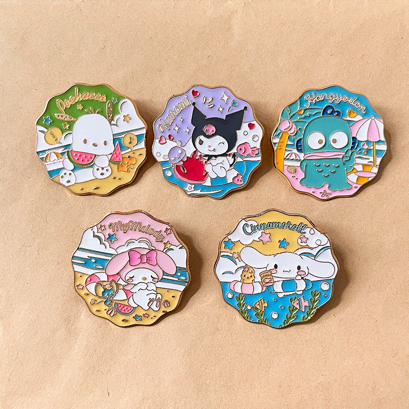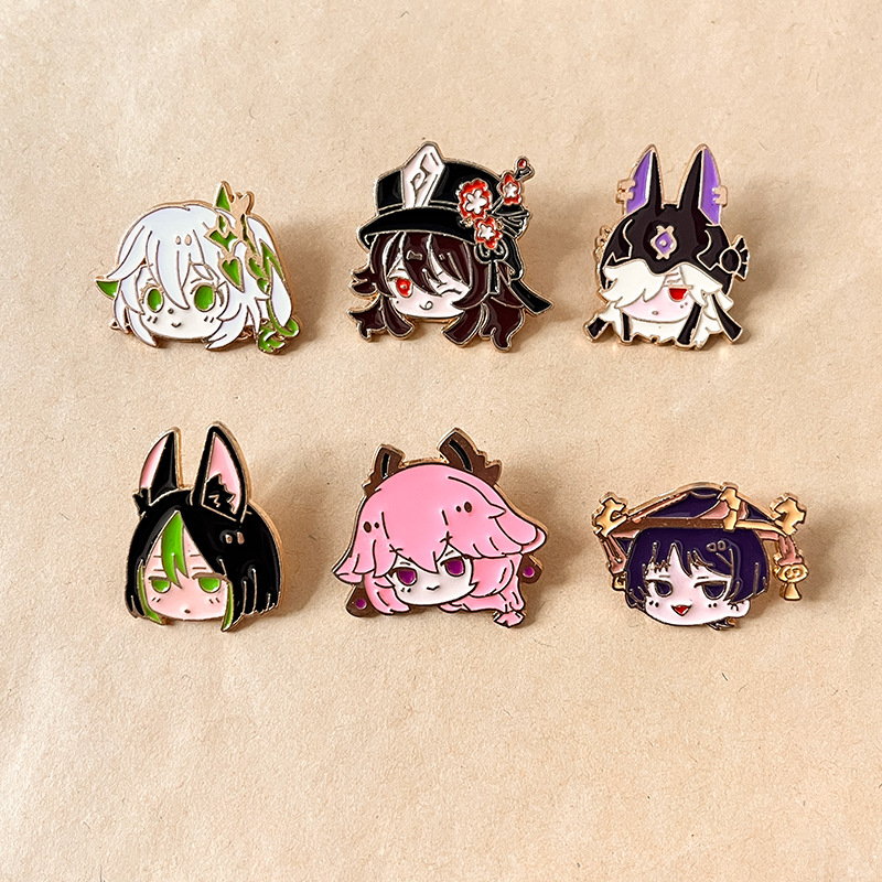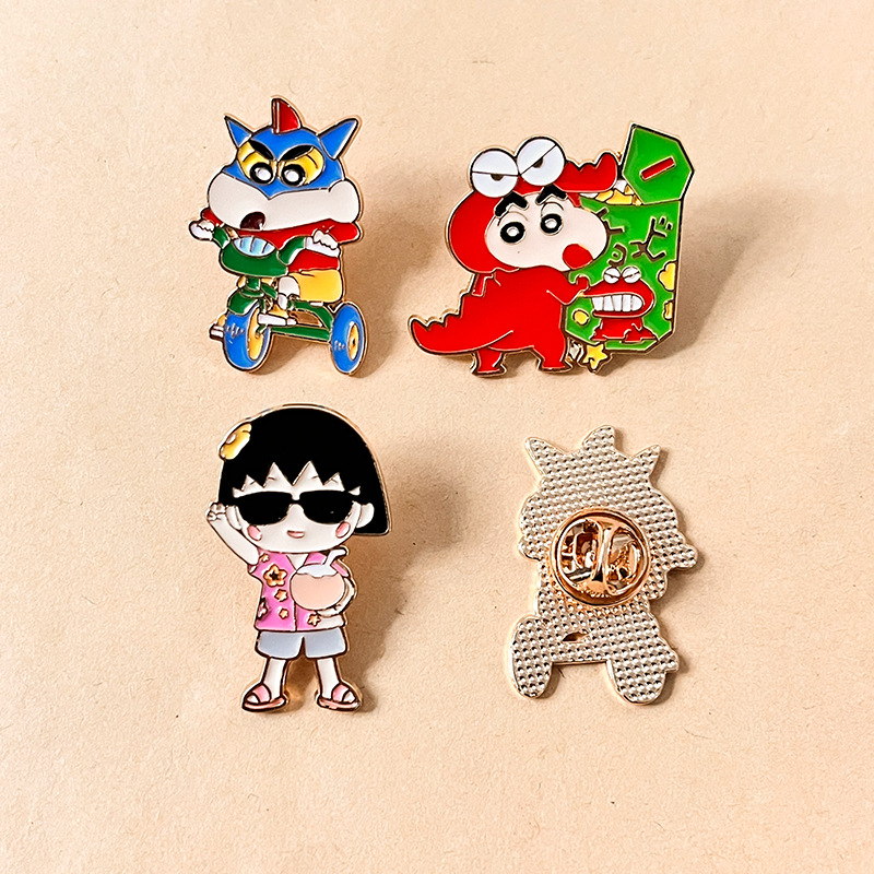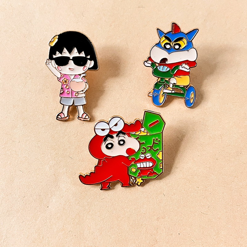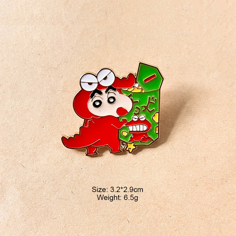 These Crayon Shin-chan pins come in character/scene shapes (Shin-chan’s dinosaur costume, Himawari’s casual look) with vibrant, glossy detailing. They adorn backpacks, jackets, or hats—perfect for anime lovers to showcase playful, nostalgic charm in daily outfits or fan meetups.
