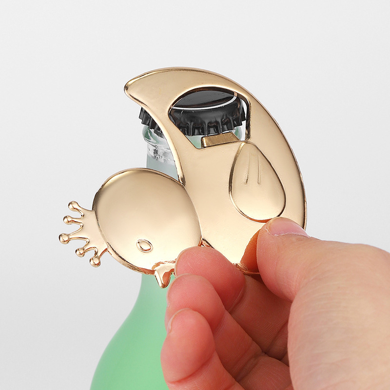 This 56g (7.5cm) opener is shaped like a cute duck with a tiny crown (shiny gold finish). It pops caps smoothly, blending playful charm with sleek decorative style—ideal for baby showers, kids’ parties, or a whimsical gift for animal-themed decor lovers.