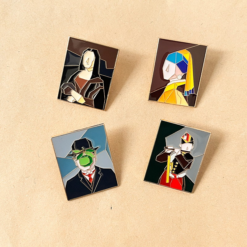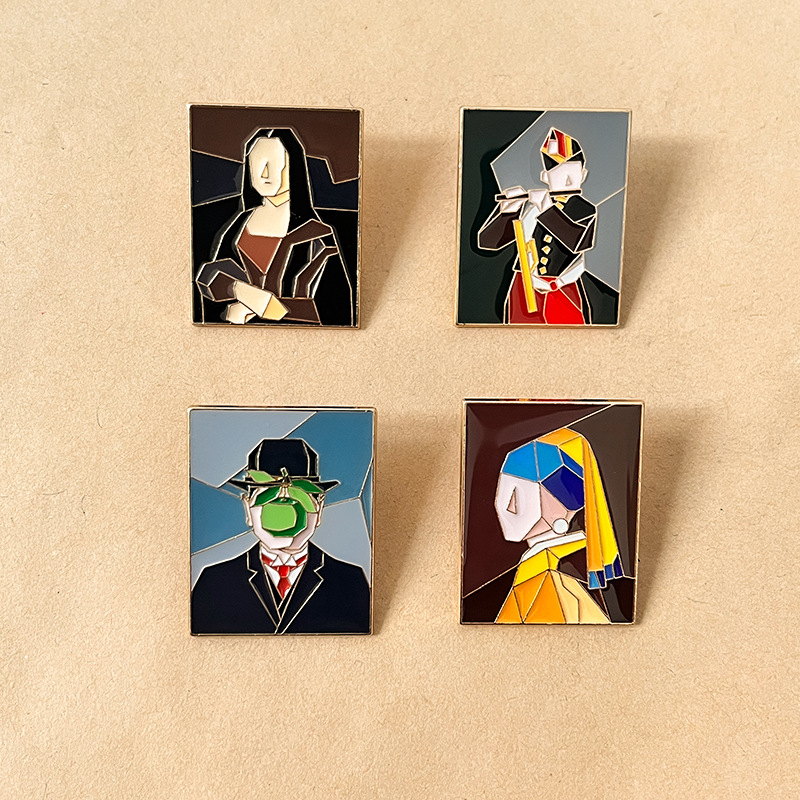 These art pins have sleek square silhouettes (framed like mini canvases) with vivid cubist enamel detailing. They adorn blazer lapels, tote bags, or art journal covers—perfect for art enthusiasts to showcase their taste, adding sophisticated, gallery-worthy charm to daily outfits or creative accessories.