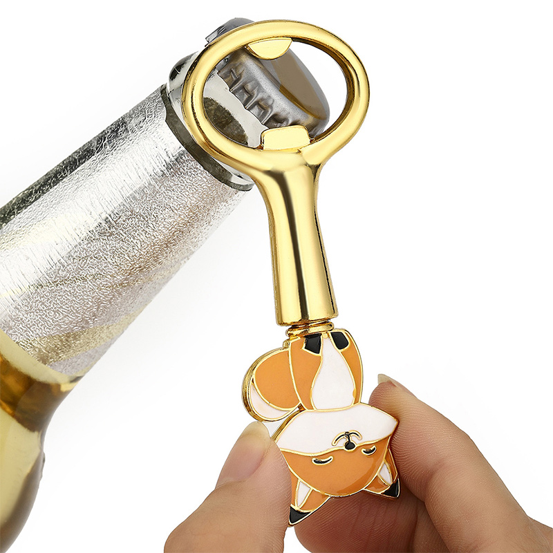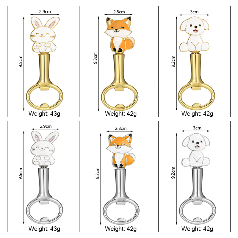 This 42-43g (9.2-9.5cm) opener features a playful enamel animal top (bunny/fox/dog) in gold/silver. It pops caps smoothly, blending adorable charm with sleek metal design—ideal for kids’ parties, animal-themed events, or a sweet gift for pet lovers.
