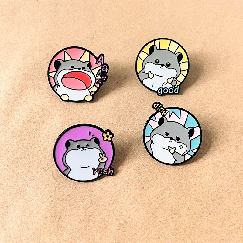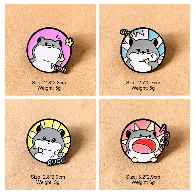 Features round-shaped hamsters with vivid expressive designs (good, yeah, etc.) and glossy enamel. Ideal for adding playful charm to bags, jackets, or hats—perfect for casual styling or mood-themed accessory accents.