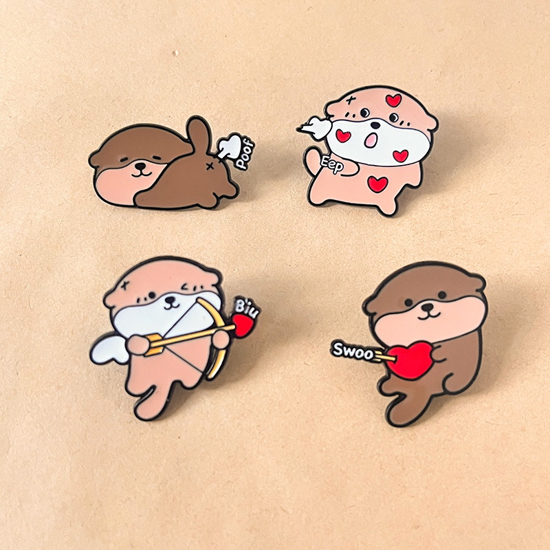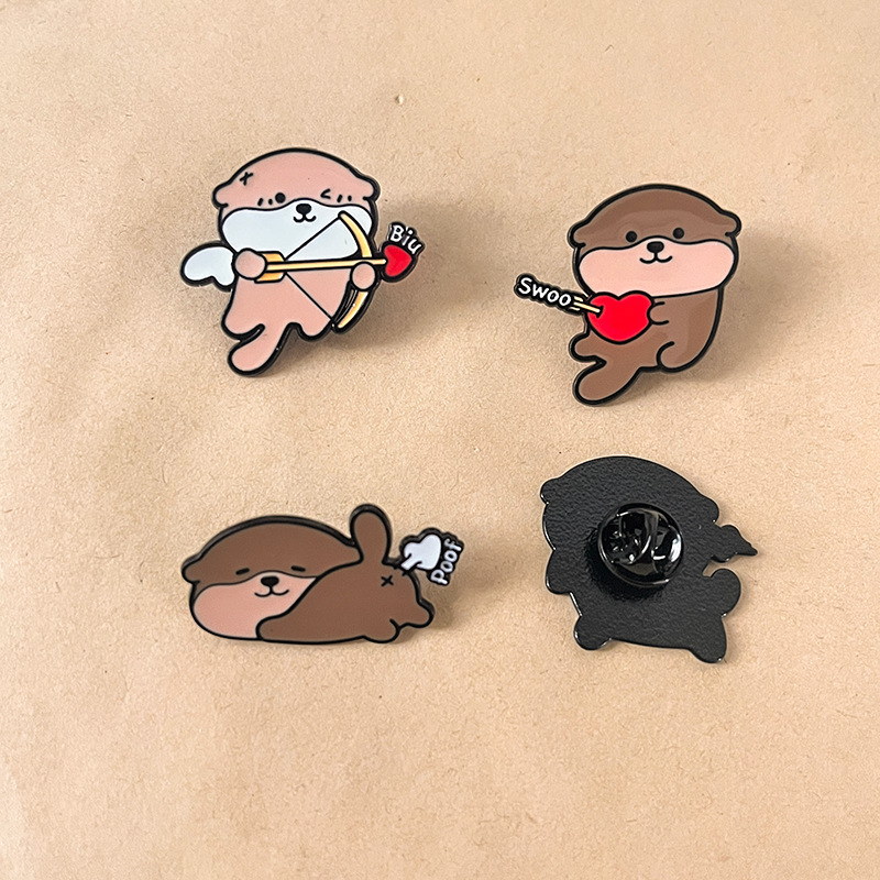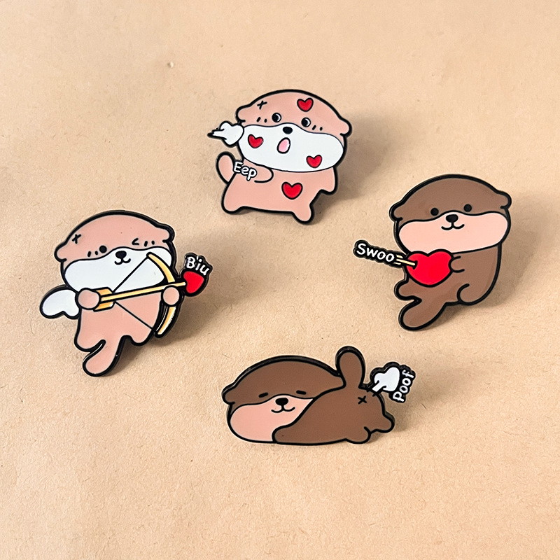 This otter pin set has 4 whimsical designs (silly "Poop" pose, cupid arrow, heart-eyed) with fun phrases—cheerful, quirky charm. For animal lovers, it adds cute flair to bags/jackets, ideal for daily styling or infusing outfits with playful, adorable otter-themed personality.