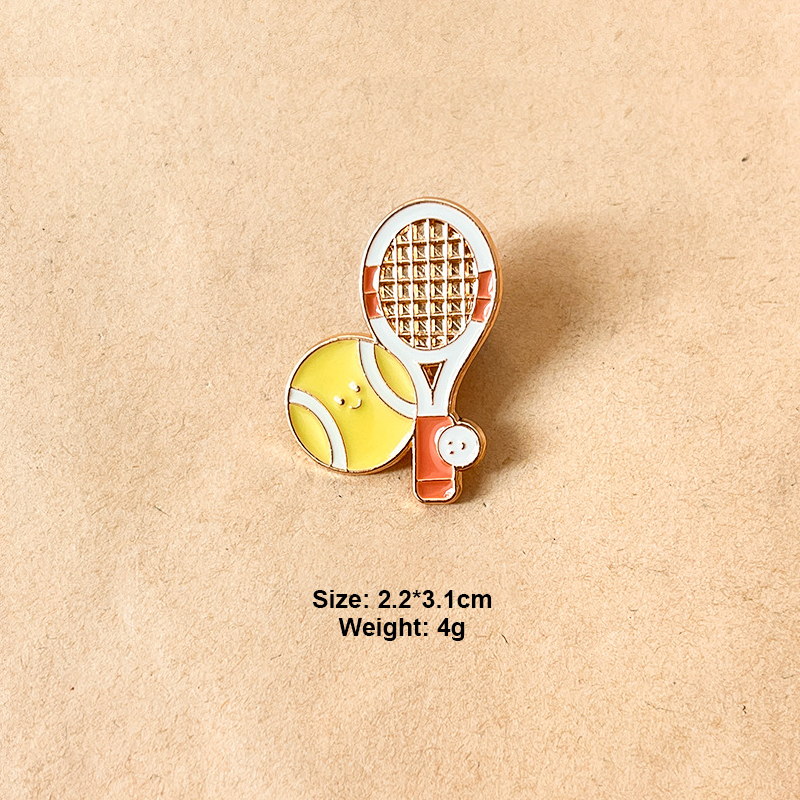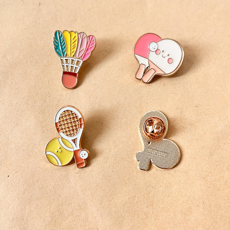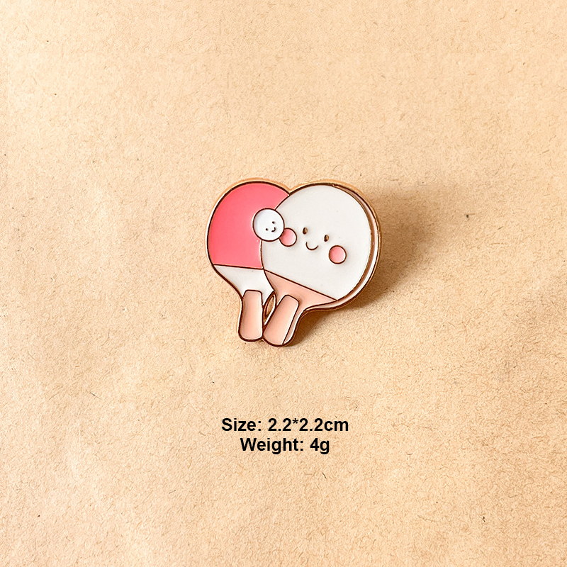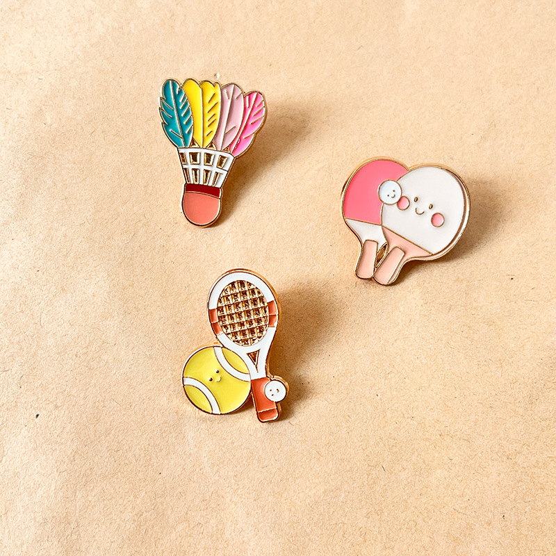 3 whimsical pins (colorful shuttlecock, smiling ping pong paddle, tennis racket+ball) — vivid enamel, cute character details. Perfect for sports fans to add playful flair to bags/jackets or display as cheerful collectibles.