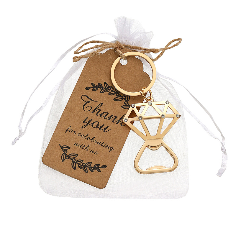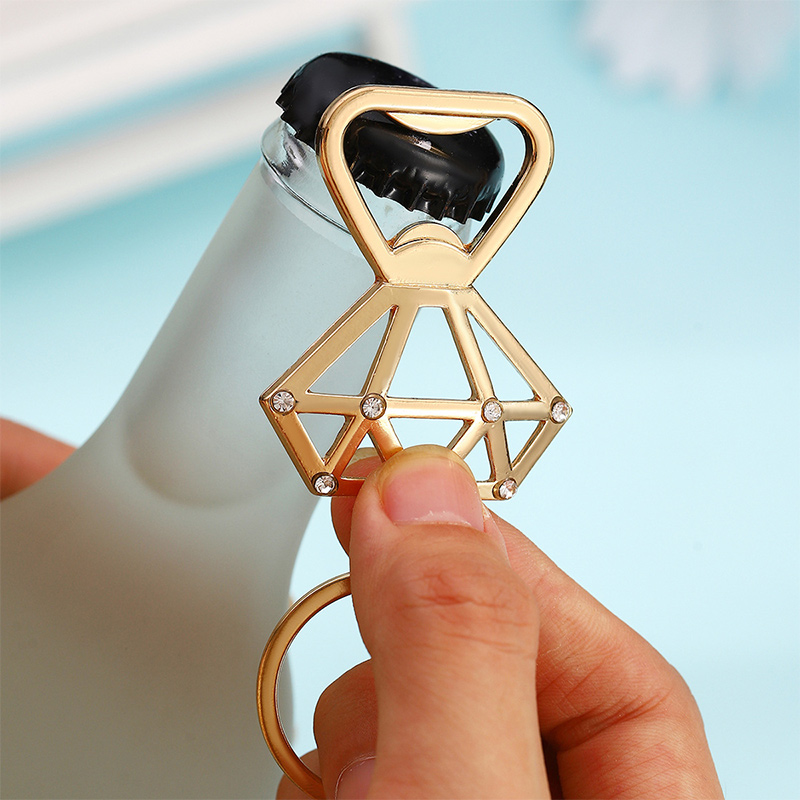 This 18g (8.5cm) opener is shaped like a glittering diamond (gold finish with crystal accents) and doubles as a keychain. It pops caps smoothly, blending glamorous decor style with practical portability—ideal for weddings, bachelorette parties, or a chic gift for accessory lovers.