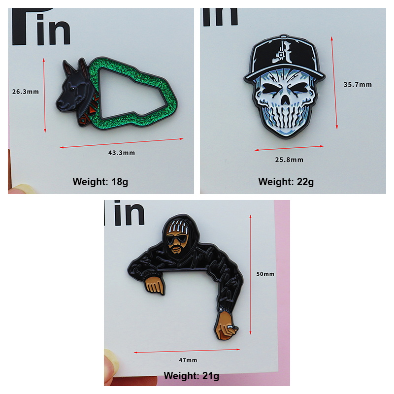 Edgy & Anime Hat Pin Set: Mix of bold designs—skull-in-cap, masked figure, coiled Shenron dragons. Vibrant enamel, dynamic silhouettes—fandom + street style, perfect for adding personality to hats/bags.