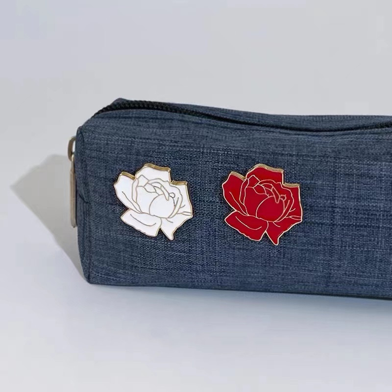 Crafted with smooth enamel and gold metal outlines, these pins feature a vivid red rose and a delicate white rose—blending timeless floral charm with polished, refined styling. Perfect for adding romantic flair to bags/jackets or gifting as graceful botanical keepsakes.