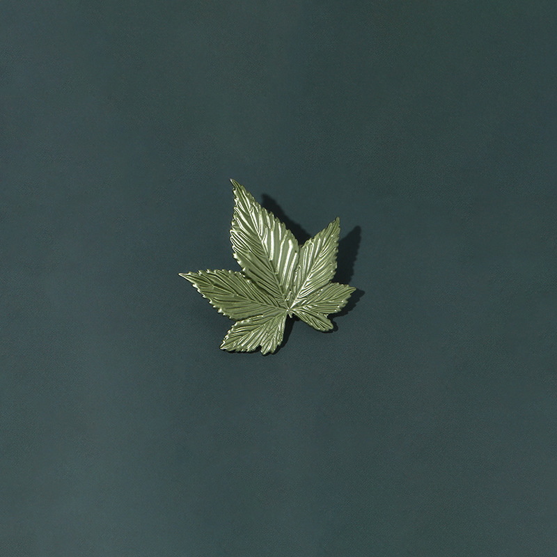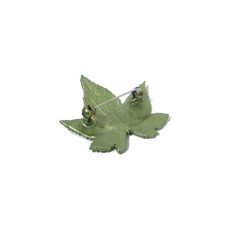 Features a detailed maple leaf silhouette with intricate vein texturing, finished in glossy metallic green enamel. Ideal for adding understated, nature-inspired charm to blazers, scarves, or bags—perfect for daily or formal styling.