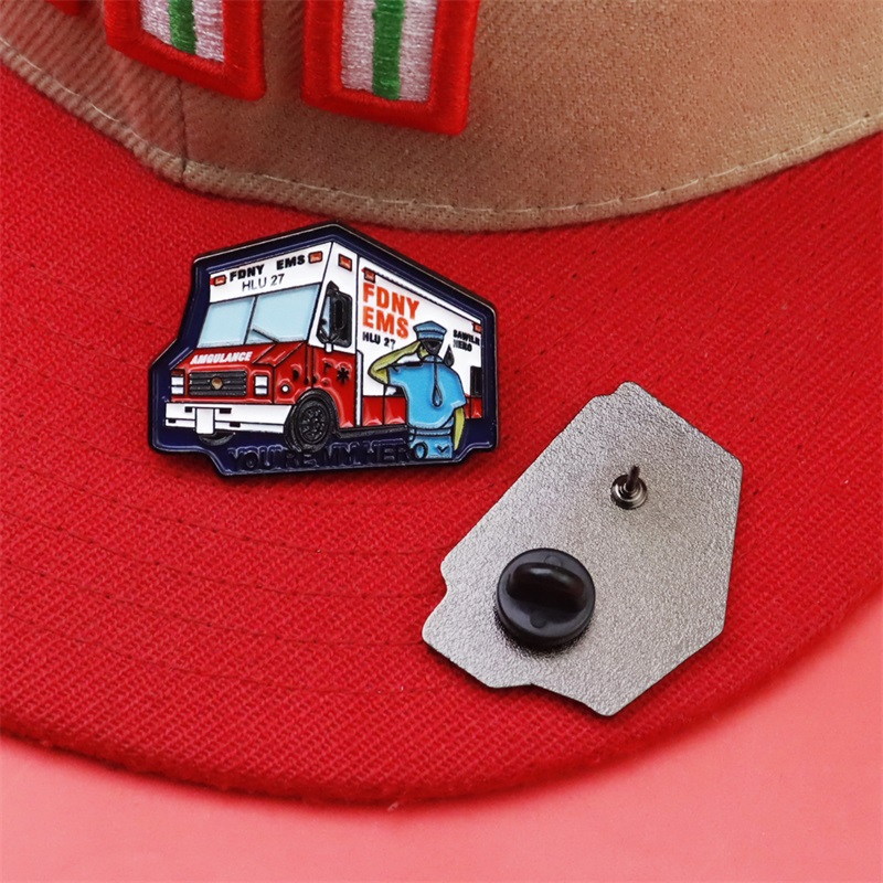 These pins feature distinct shapes: a detailed EMS ambulance silhouette (with a saluting figure) and a creative 777/angel/money bag design wrapped in wings. Used to adorn caps or bags, the ambulance pin conveys heartfelt tribute, while the other adds edgy flair—suiting diverse style preferences for accessory decoration.