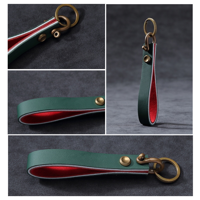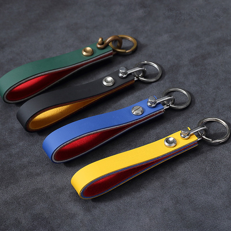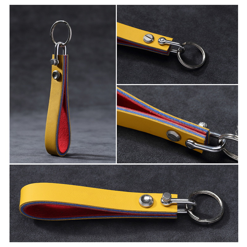 These multicolor leather keychains come in dark green, black, blue, and yellow, crafted from premium leather with sturdy metal clasps. Stylish, durable, and ideal as gifts for loved ones, perfect for gifting on holidays or as a chic, high-quality key accessory.