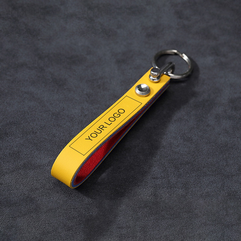 These multicolor leather keychains (dark green, black, blue, yellow) are crafted from premium leather with robust metal hardware. Sophisticated, durable, and perfect for business gifting or corporate use, serving as a high-quality, professional accessory for executives or clients.