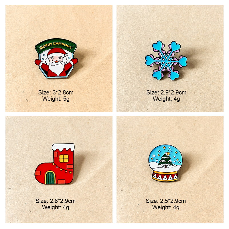 6 charming pins (angel-bear stocking, snowflake, holly wreath, snow globe, Santa badge, chimney Santa) burst with classic Christmas vibes—vibrant hues amplify their cozy, festive charm. Perfect for adding holiday flair to bags/jackets or gifting as cheerful seasonal collectibles.