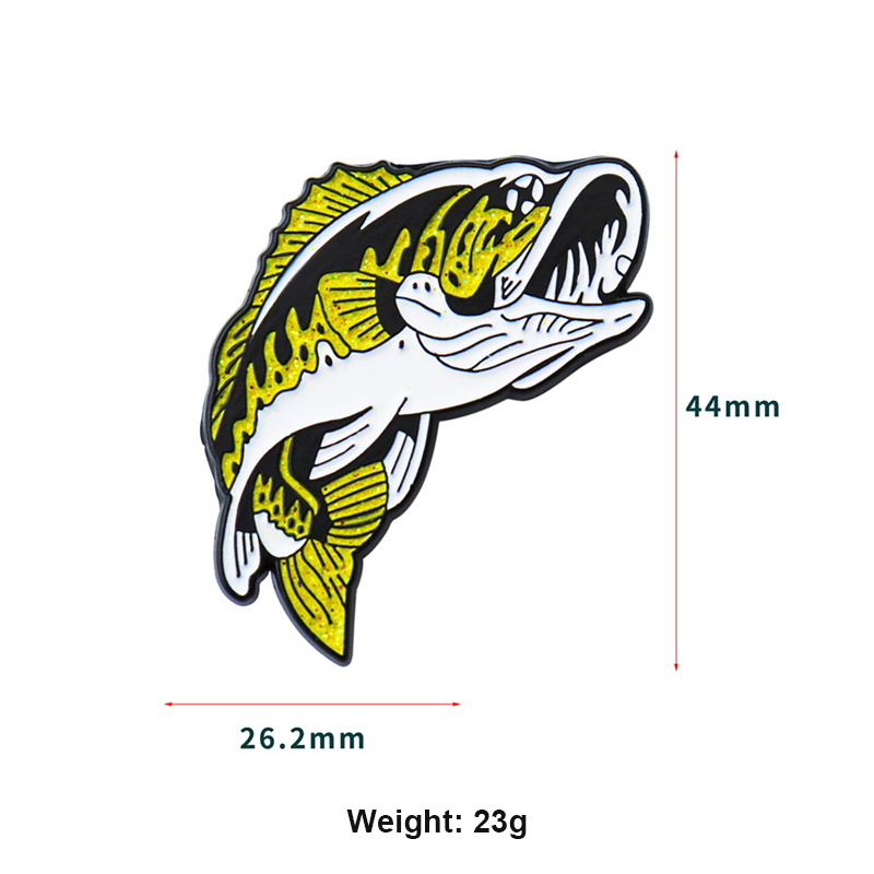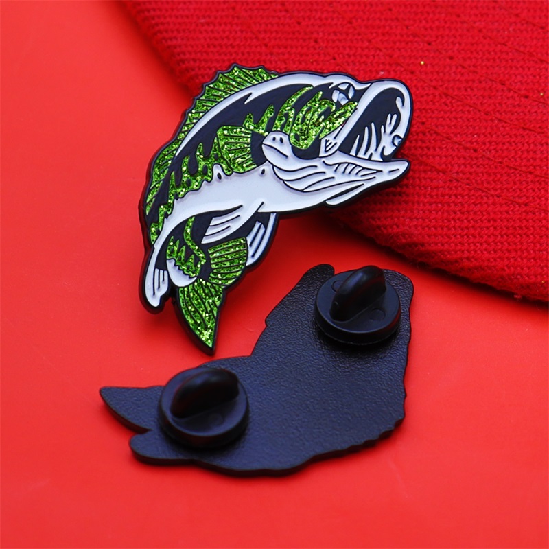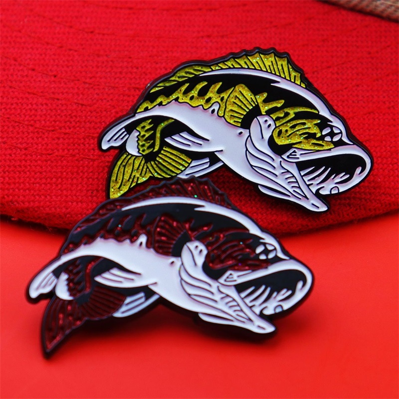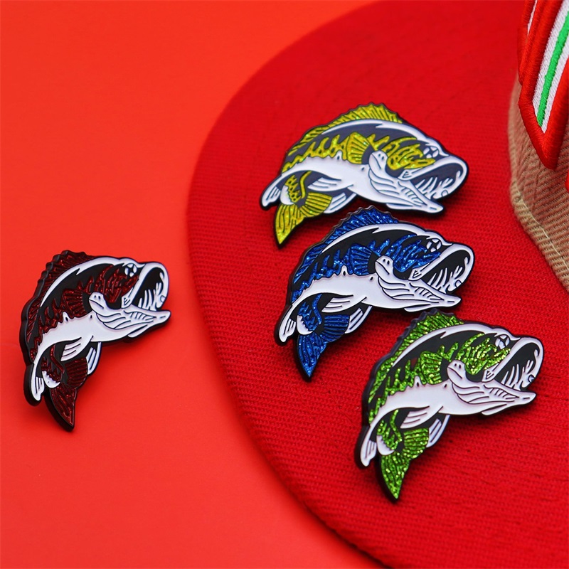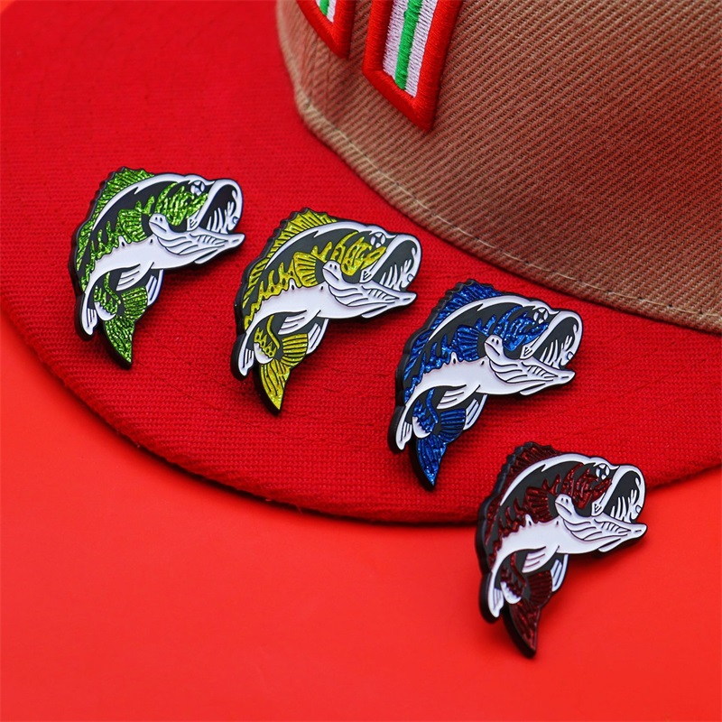 These pins boast glossy bass (fish) shapes in vibrant green, yellow, blue and red hues, with fine detailed outlines. Designed to decorate caps or bags, they add vivid, personalized flair—ideal for fishing/outdoor lovers to elevate accessories with eye-catching, distinctive touches.