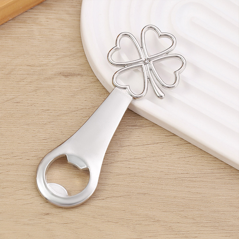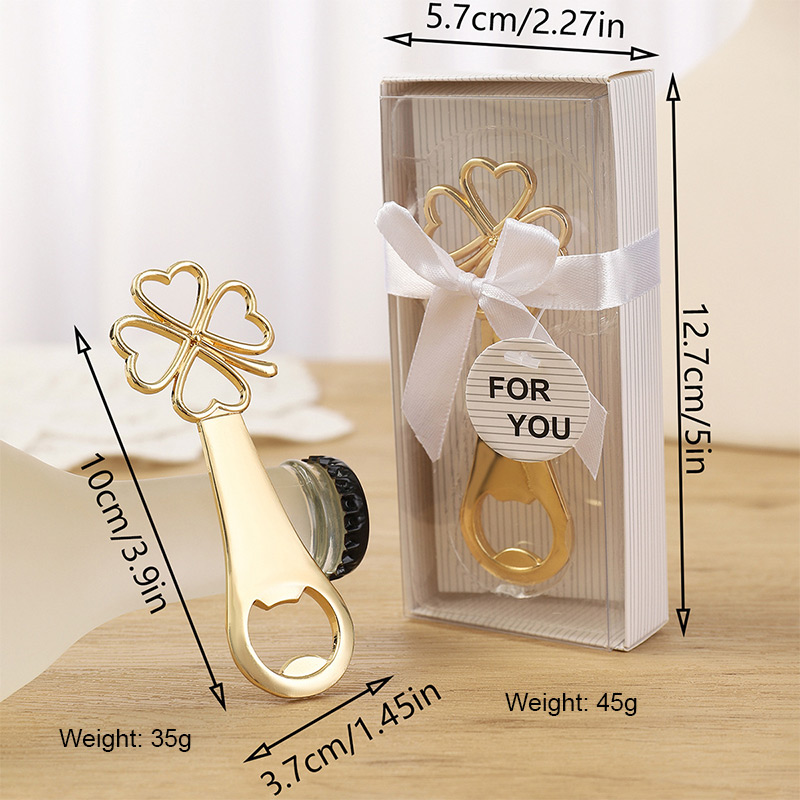 This 35g (10cm) gold/silver opener features a heart-shaped four-leaf clover design. It smoothly removes bottle caps, blending lucky charm with practicality—ideal for gifting, adding a whimsical touch to barware, or brightening casual gatherings.