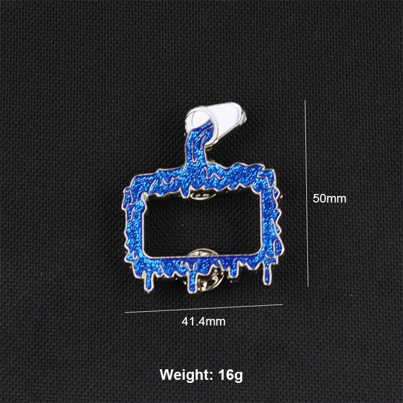 Features a blue glitter drip frame & silver LA-logo pin with intricate patterns—metallic frames, eye-catching textures. Decorate caps/bags, ideal for fashion lovers craving unique, stylish accessory touches.