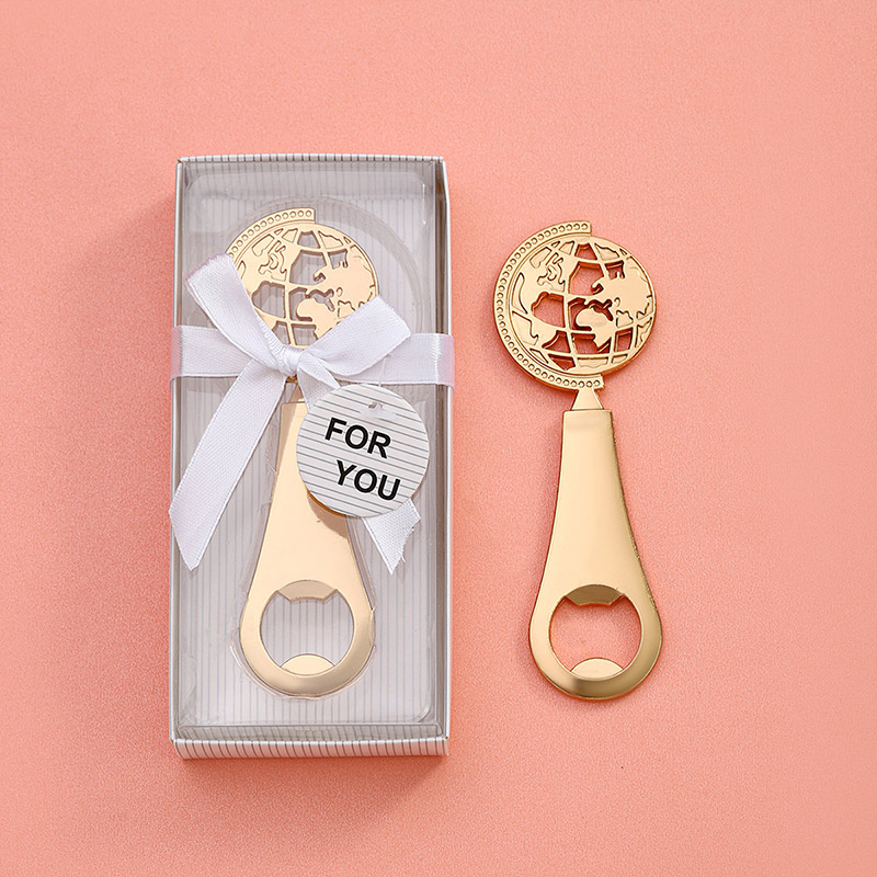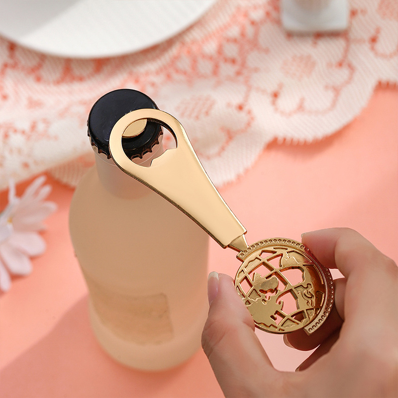 Product : Globe-Themed Rose Gold Bottle Opener