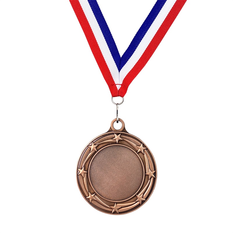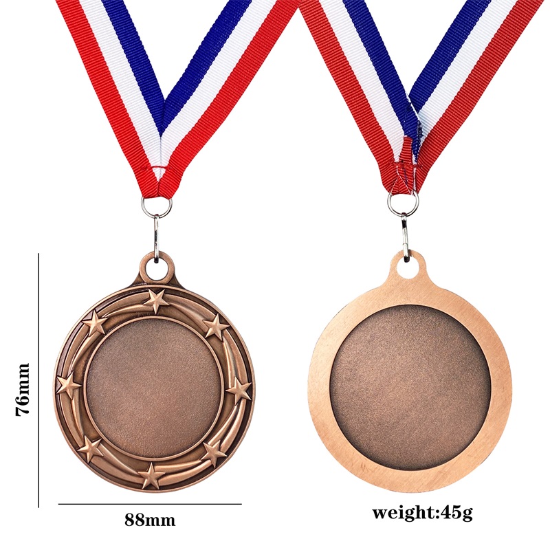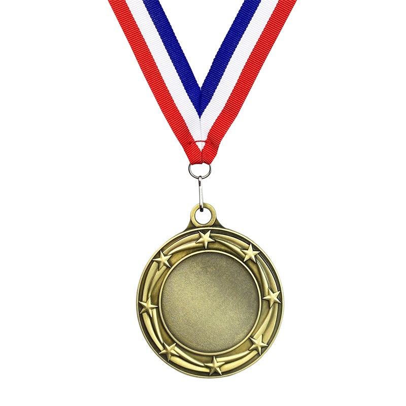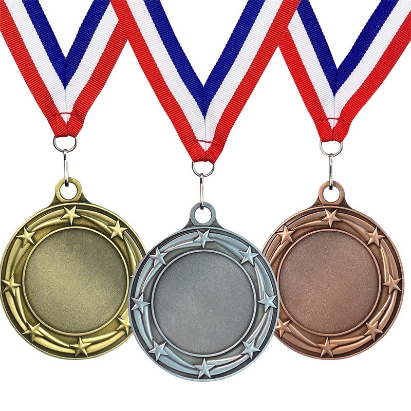 This blank star medal (gold/silver/copper metal) features dynamic star accents and sleek curved detailing—ideal for sports events. Its polished, versatile design leaves ample space for custom engraving, making it a sharp, adaptable honor for recognizing athletic achievements across various competitions.