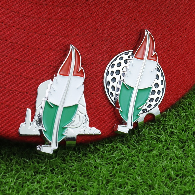 Stylish Golf AccessoriesFeaturing feather/golf ball shapes, red/green/white accents, and shiny metal borders, these double as golf markers & cap/bag decor—ideal for golf lovers to add chic, functional flair.