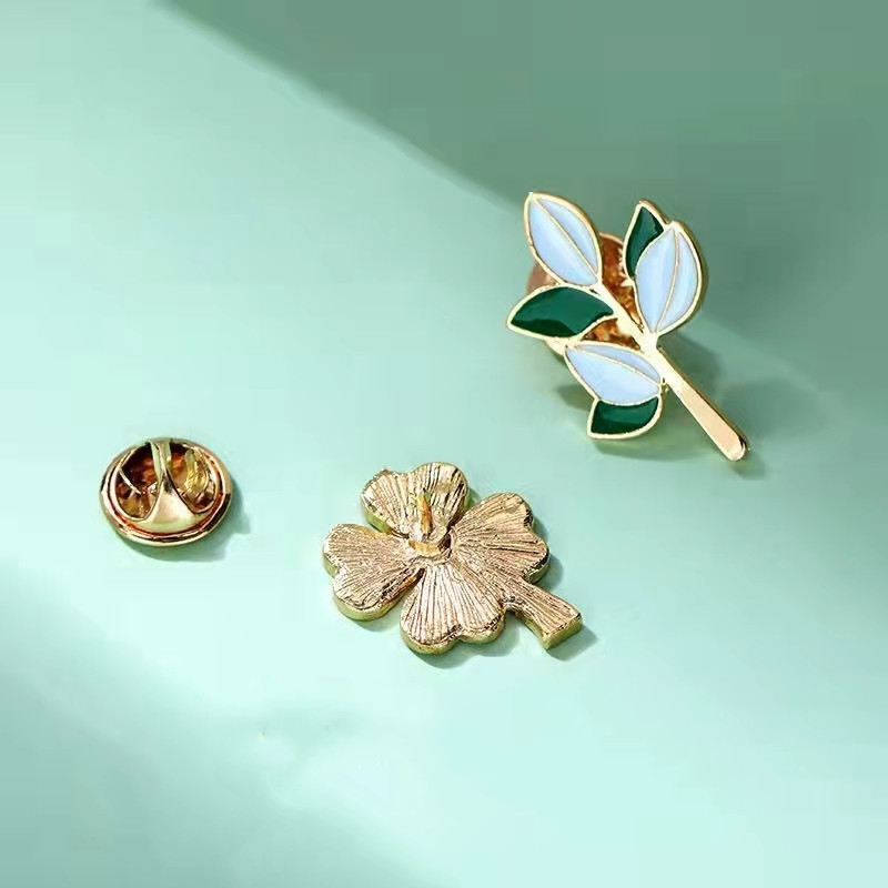 Product : Lucky Clover & Leaf Enamel Pins Weight: 5g Color : Gold Crafted with glossy enamel + gold trim, these clover (good fortune) and leaf pins add subtle nature charm. Ideal for sprucing up blazers, bags, or scarves—perfect for daily styling or understated accessory accents.