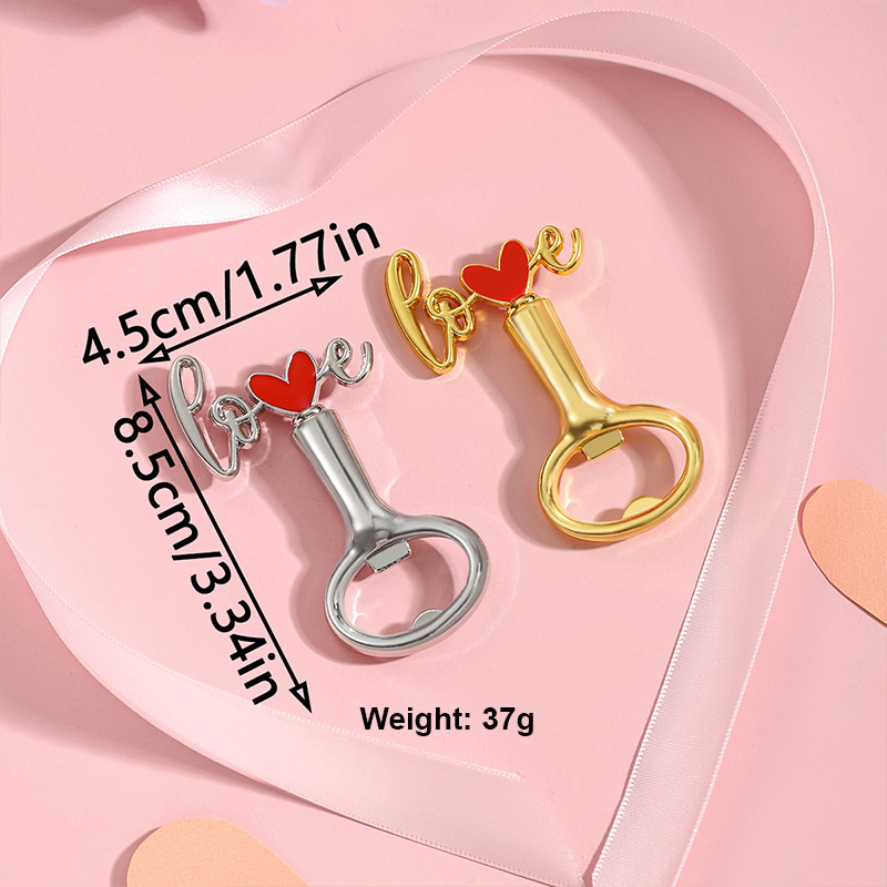 This 37g (8.5cm) opener features cursive "love" with a red heart, in glossy gold/silver. It pops caps easily, making it a romantic favor for weddings, Valentine’s parties, or a sweet gift for couples and love-themed gathering attendees.