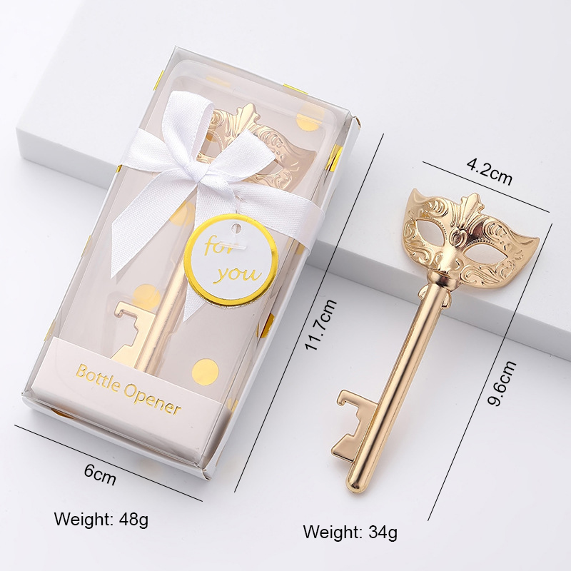 This 34g (11.7cm) gold opener blends a ornate masquerade mask with a key shape. It pops caps easily, radiating elegant, mysterious flair—ideal for masquerade balls, vintage-themed parties, or a sophisticated gift for event attendees.