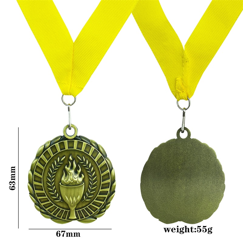 Crafted from antique gold/antique silver/antique red copper metal, this medal pairs a weathered, retro finish with an embossed torch (a symbol of sports spirit) and laurel wreaths. It’s ideal for honoring standout performers at track-and-field meets, school athletic days, community sports tournaments, and youth competition ceremonies—infusing each recognition with nostalgic, dignified flair.