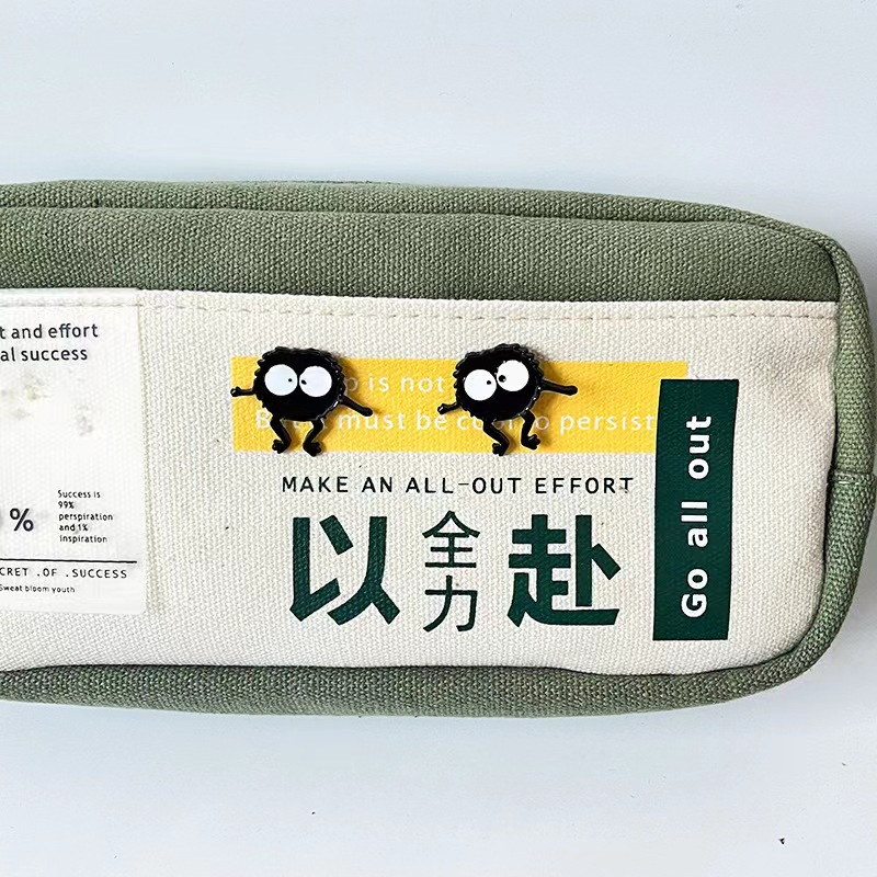 Features two identical round-bodied, fuzzy-textured monsters with bold white eyes, finished in glossy black enamel. Ideal for adding whimsical, understated charm to jackets, bags, or hats—perfect for casual, quirky daily styling.