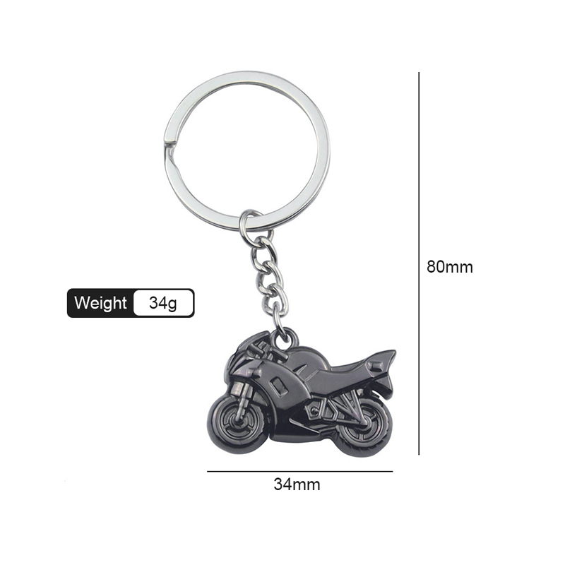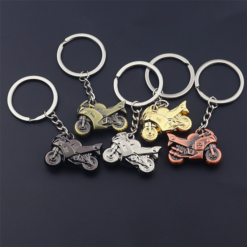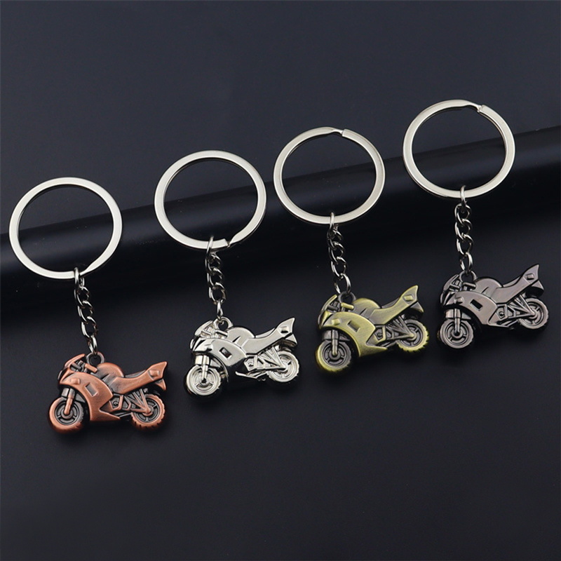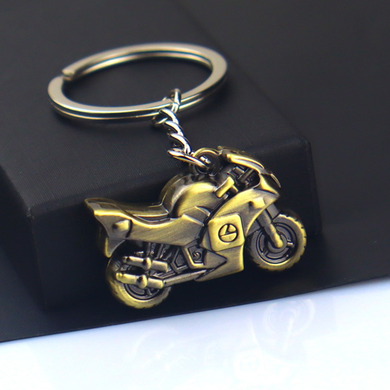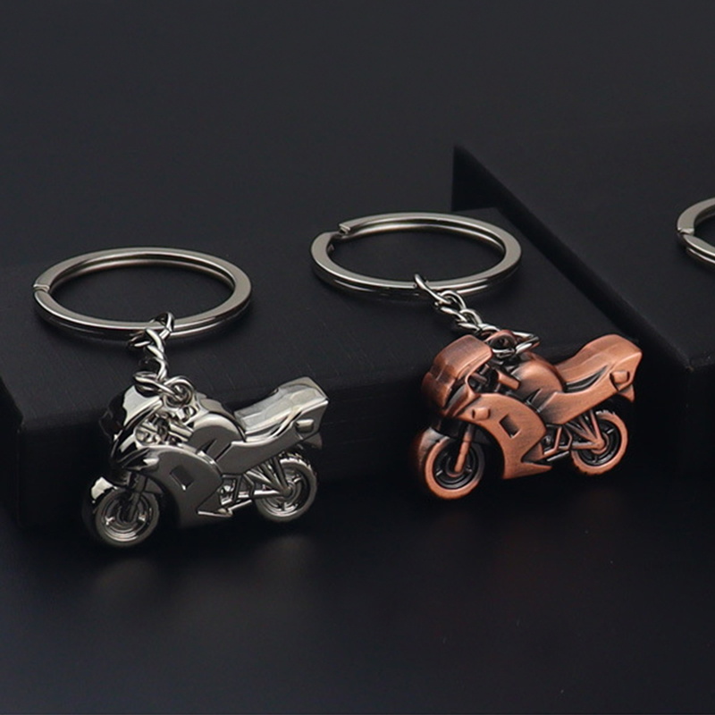 This keychain showcases intricate motorcycle models crafted from polished metal (black nickel, gold, silver, bronze hues). Boasting a sleek, rider-centric design, the durable, metallic construction caters to motorcyclists and collectors drawn to finely detailed, long-lasting accessories.