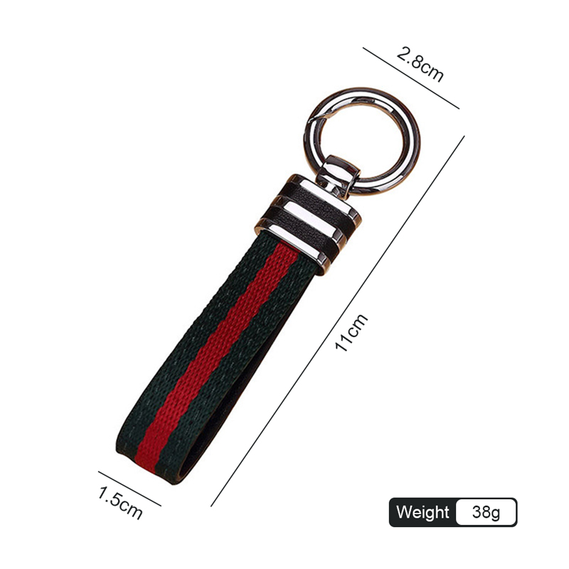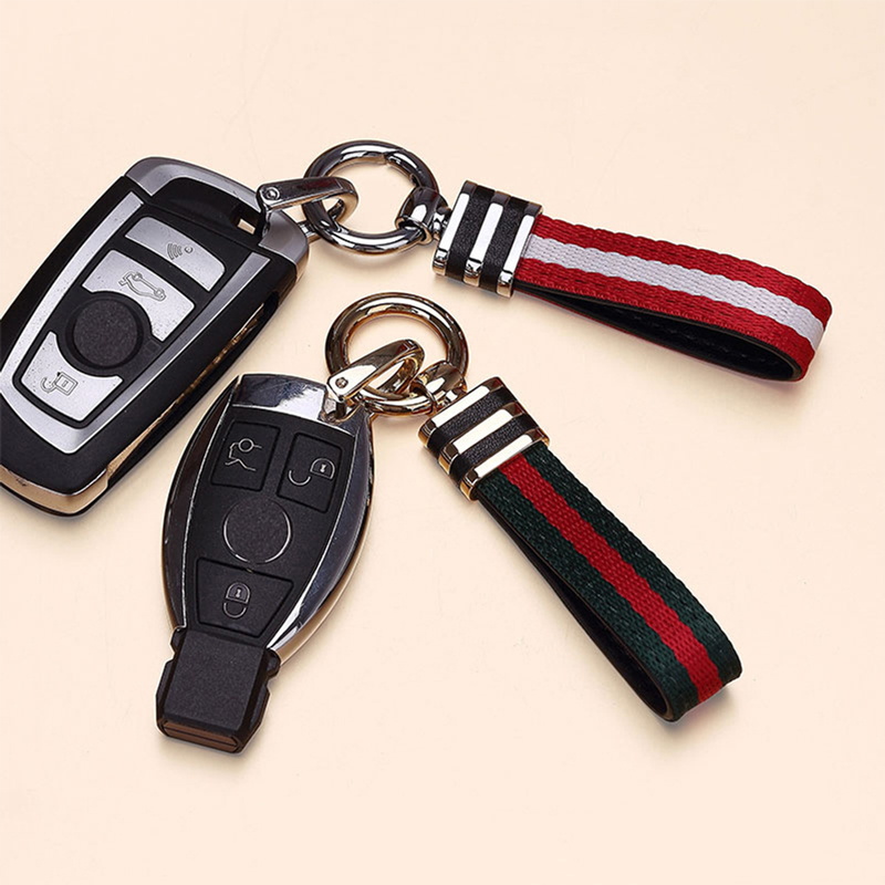 These striped webbing keychains have metallic accents, come in multiple color combinations, and offer a stylish, practical solution for key organization or bag accessorizing.