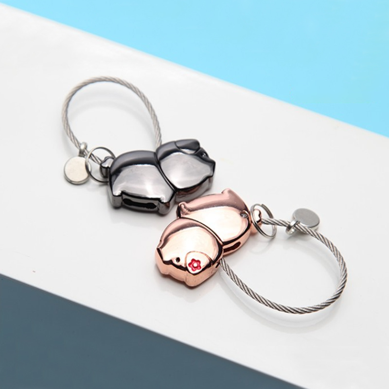 Made of metal, these keychains come in gold and silver, featuring cute kissing pig designs with cable straps. They’re perfect for couples to organize keys, adding a stylish, romantic touch, and are great for gifting or daily use in romantic lifestyles.